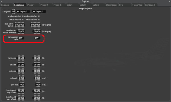 - Jet engines can now specify the direction of the compressor spin (clockwise or counter-clockwise). With the fans getting bigger and bigger with each new engine generation, the torque effect becomes noticeable.