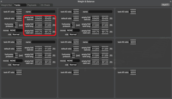- You can now enter the fuel tank moment arm in three dimensions for both full and empty tanks. Previously, only the Z coordinate could change with weight, now the location (mass centroid) can change in all three dimensions.