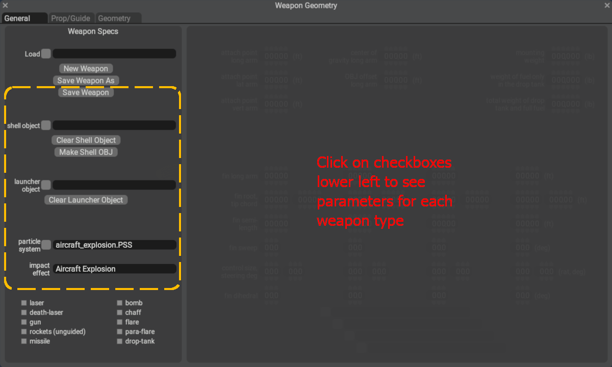 This General Tab is only used to edit Weapon Files. Changes made on this tab have no effect on the aircraft.