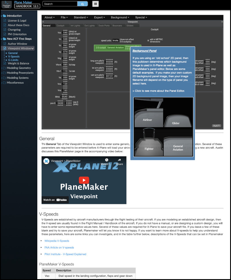 This manual is a suitable reference for the individual parameters and widgets found throughout PlaneMaker's User Interface, containing basic explanations about what each parameter does. This manual complements the tooltips and video links found within PlaneMaker, yet provides additional examples and expanded information, allowing for a more thorough understanding of X-Plane aircraft modeling methods. This manual is intended to be searched & browsed for reference to specific parameters within PlaneMaker and is NOT suitable as a tutorial for how to model an aircraft. Tutorials on how to create aircraft with PlaneMaker are available and discussed below <TODO: add links to any tutorials or remove this sentence)