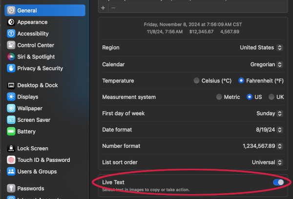 This manual makes heavy use of mouseover gestures on images to display popup tooltips. On Mac OSX, if you have Live text enabled in your Language settings (Montery / v12+), then this will interfere with the mouseover gestures and cause inconsistent tooltip popup behavior as the OSX Live Text feature attempts to select the text in the image.