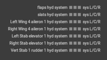 X-Plane Models three hydraulic CIRCUITS, which may be referred to as "Left/Center/Right", "L/C/R", "A/B/C" or "1/2/3" depending on the dataref name or description. When dataref names refer to the CIRCUIT or SYSTEM with a number or letter, then 1/A=LEFT, 2/B=RIGHT and 3/C=CENTER.